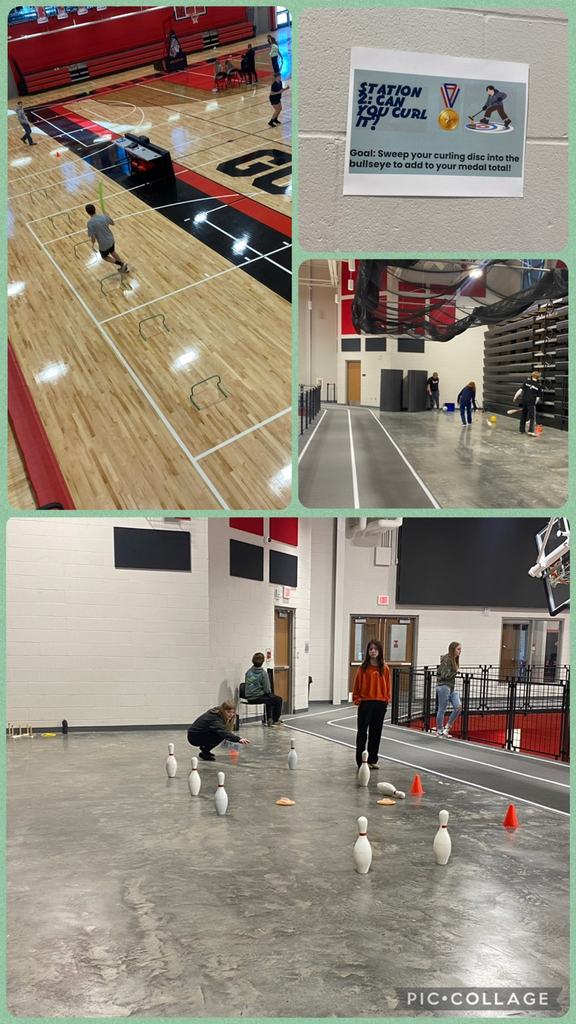 Coach Taylor's REC PE classes participated in their own version of the Winter Olympics today. Students got the chance to practice their curling skills, toss golden rings, race around the track, and make their way through the obstacle course carrying the Olympic flame. Shout out to Ms. Voegel's Work and Family Relationships class for coming out to excitedly cheer on our gold medal contestants!