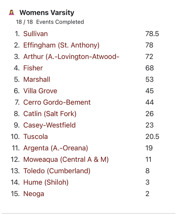 SHS Girls Track takes 2nd place in the 15 team Tolono Girls Invite behind some very strong performances in the competitive field of athletes from 1A and 2A schools!