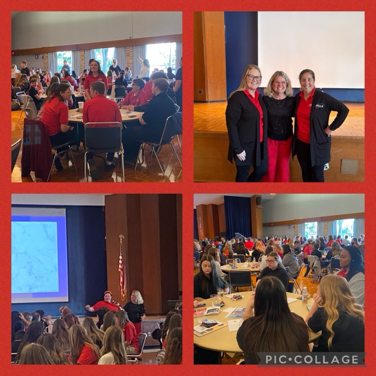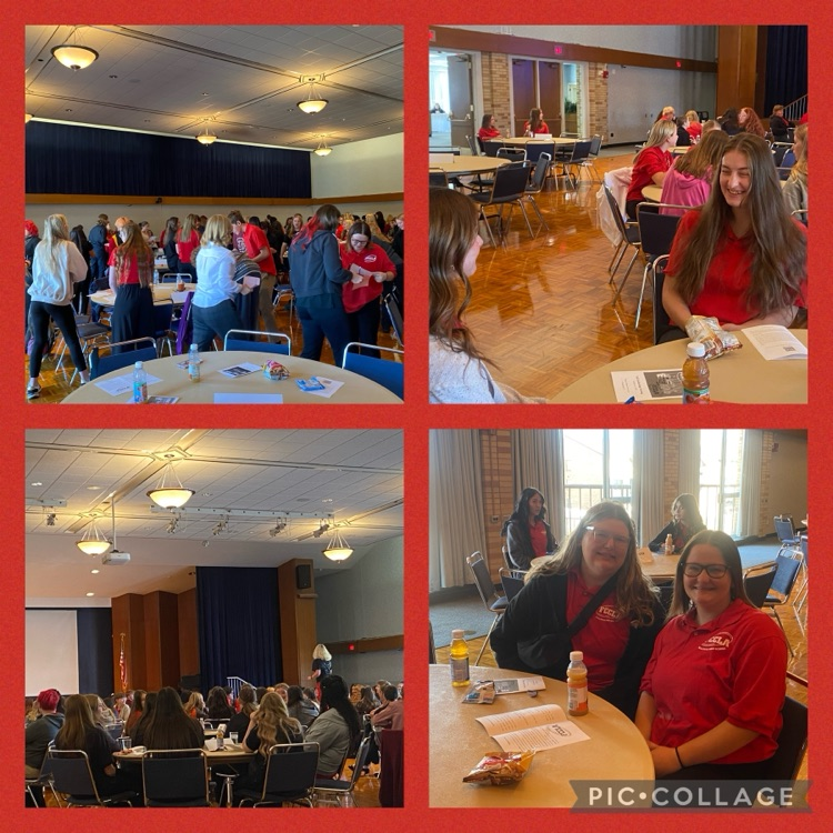 Thirty two members of SHS FCCLA(Family, Career and Community Leaders of America), along with their advisors, Ms. Voegel and Ms. Taylor, attended the FCCLA Fall Leadership Conference at EIU today. Facilitating the leadership development was Patty Hendrickson, who has shared her interactive message with more than one million people since 1987 and also trains Fortune 500 teams. Patty encouraged the young leaders to become comfortable with being uncomfortable, seek connections before content, and that leadership isn't just about titles. While keeping students engaged for two hours with her hands on leadership activities, they also connected with other chapters to discuss potential service projects and shared collaborative ideas to promote leadership growth within their chapters.